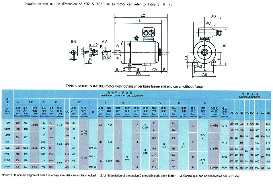 1.IM1001 & IM1003 motor with footing under base frame and end cover without flange?YBZ、YBZS112M-250M
