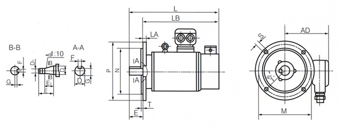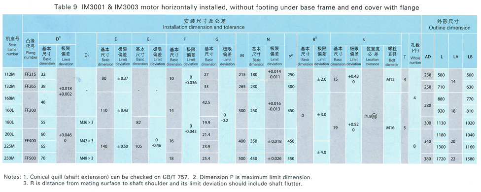 2.IM3001 & IM3003 motor horizontally installed,with base frame without footing and end cover with flange YBZE、YBZSE112M-250M