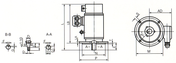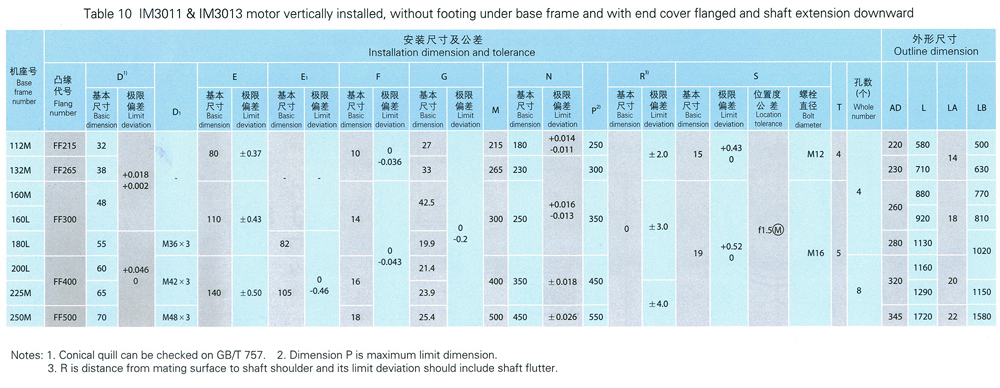 3.IM3011 & IM3013 motor vertically installed, with base frame without footing,end cover with flange and shaft stretchin downward YBZE、YBZSE112M-250M